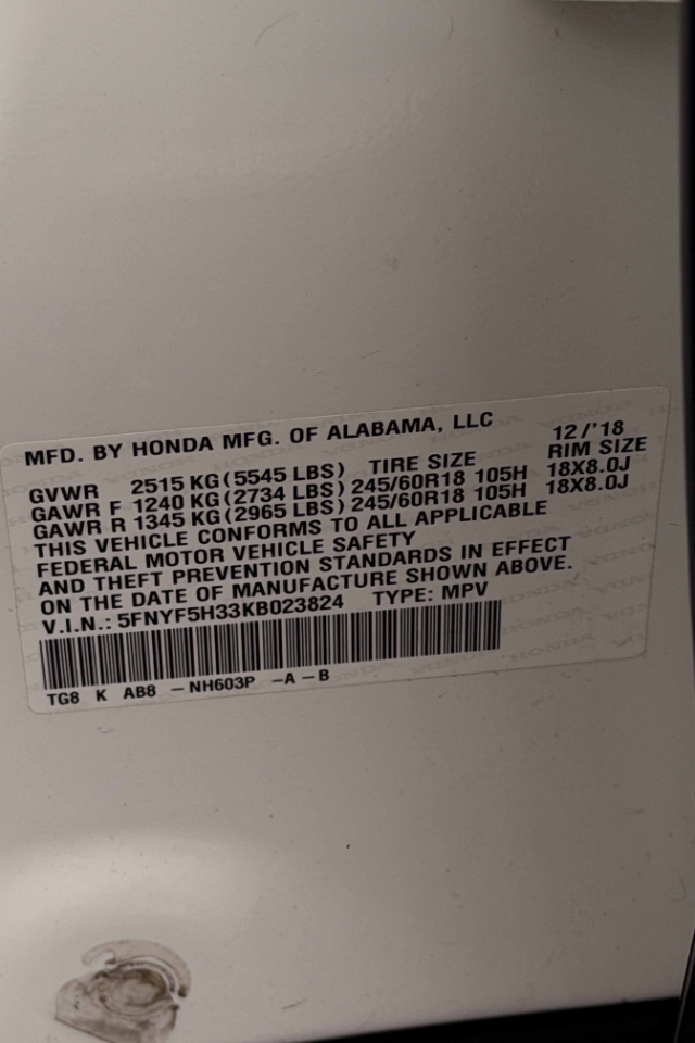 5FNYF5H33KB023824